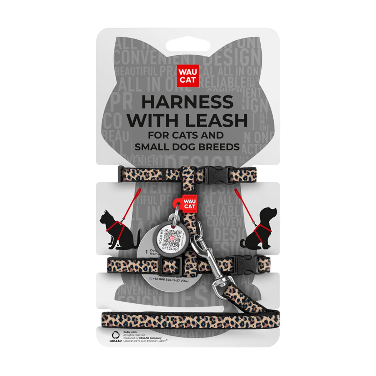 Početna Psi Oprema za pse WAUDOG – Najlonski pojas za mačke i male pse sa povodcem i QR pasošem, dizajn „Leopard“, plastični fastex, XS