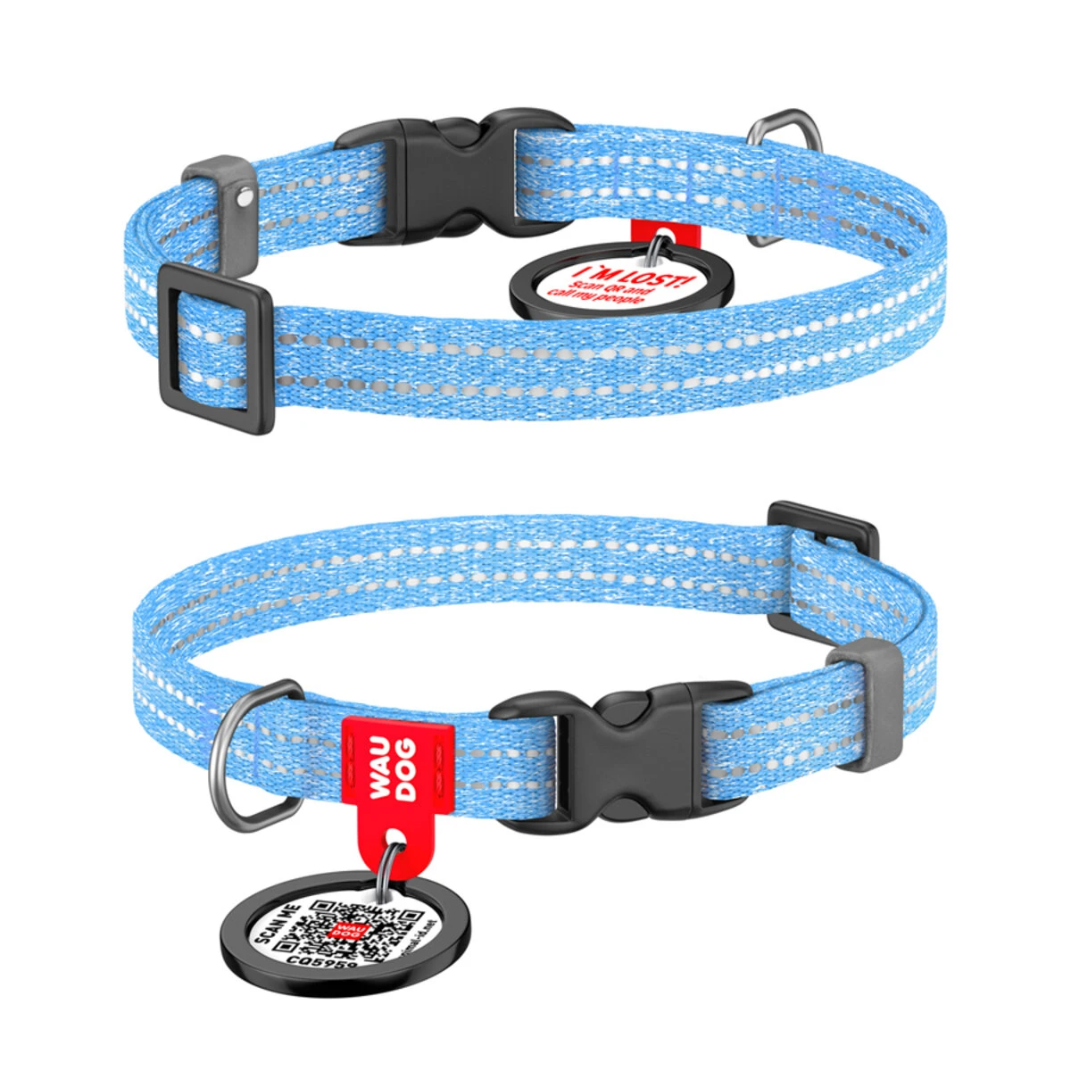 WAUDOG – PAMUČNA KRAGNA SA QR PASOŠEM, OBNOVLJENI PAMUK, PLASTIC FASTEX, XS, Plava